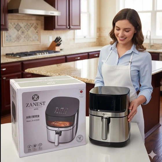 آشپزی سالم، خوشمزه و بدون دردسر! تحت لیسانس ژاپن → کیفیت بالا و عمر طولانی. ظرفیت بزرگ ۸ لیتر برای پختهای خانوادگی. تکنولوژی چرخش هوای ۳۶۰ درجه → پخت یکنواخت و حرفهای. کریسپی کردن با ۸۰٪ روغن کمتر → صفحه جلویی تمامشیشهای → دید واضح و زیبا. قابلیت دید ۱۸۰ درجه + لامپ داخلی → کنترل کامل پخت. دو المنت قوی برای پخش بهتر و سریعتر هوا. قابلیت شستوشوی قطعات در ماشین ظرفشویی → راحت و بیدردسر. ۱۰ برنامه پختوپز برای هر نوع غذا. دارای یکسال گارانتی شرکتی.