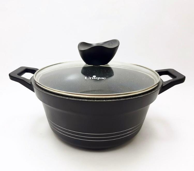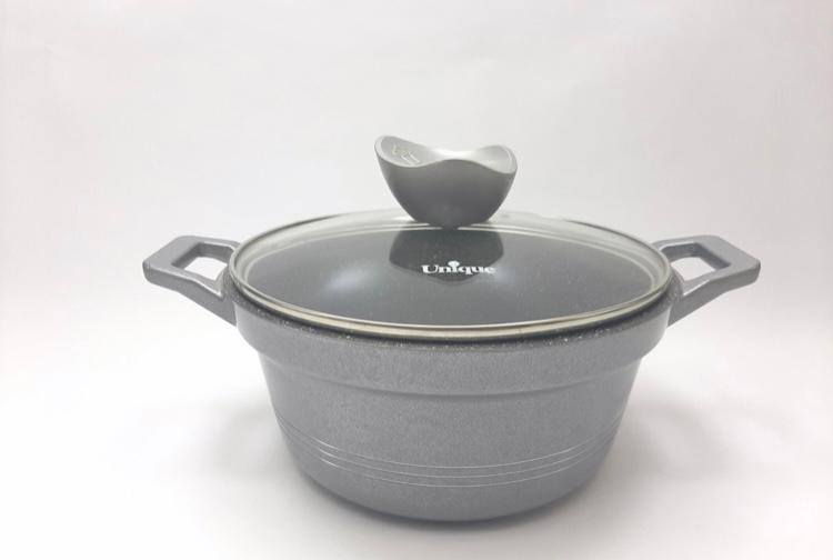قابلمه سایز 16 جنس دایکاست مدل کلاسیک یونیک دارای پوشش گرانیت درب شیشه ای دارای 4 رنگ پیازی نقره ای مشکی کرم