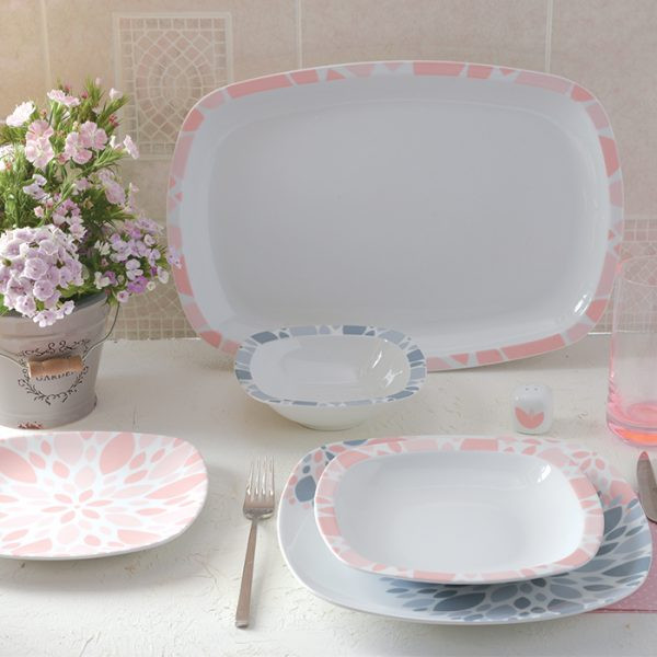 سرویس چینی 27 پارچه غذاخوری سلنا صورتی درجه 1 زرین