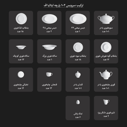ترکیب سرویس 102 پارچه ایتالیا اف: