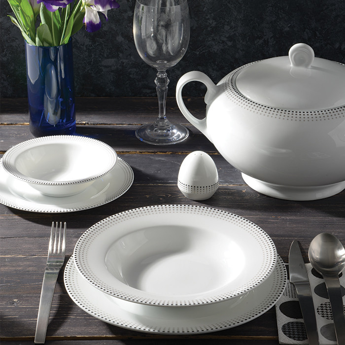 سرویس چینی 28 پارچه غذاخوری ایتالیا مون بلان مشکی درجه یک