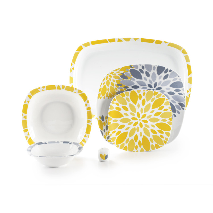 سرویس غذاخوری 27 پارچه چینی زرین ایران سری کواترو مدل سلنا زرد درجه یک