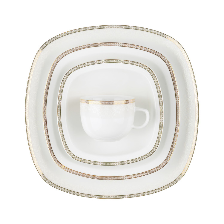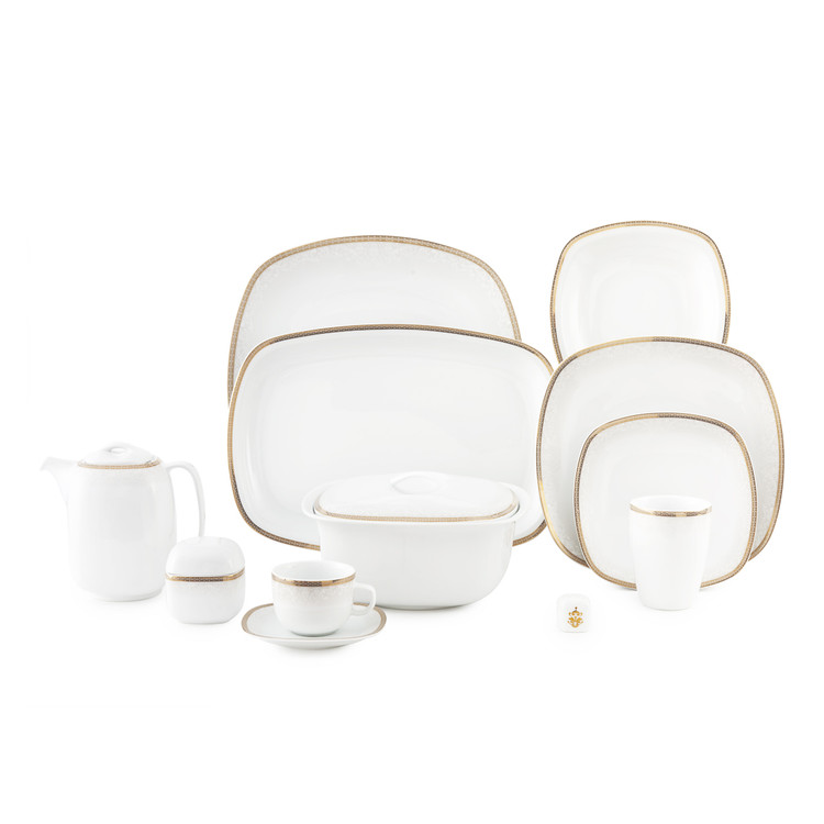 سرویس غذاخوری 98 پارچه چینی زرین ایران سری کواترو مدل ریوا طلایی درجه یک