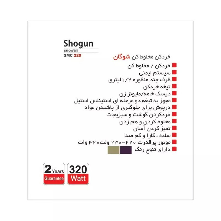 سه کاره خرد کن-مخلوط کن-همزن مدل SMC-220 شوگان - Shogun پارس خزر
