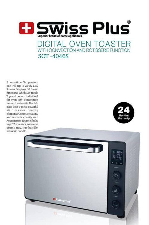 توستر مدل SOT-4046S از برند مطرح سوئیس پلاس که دارای طراحی زیبا و کاربرد های فراوان است. این توستر دارای 10 برنامه پخت از قبل تعیین شده میباشد که میتوان با تنظیم کردن آن به راحتی از این محصول استفاده کرد. شیشه این توستر دوجداره میباشد که کیفیت پخت را افزایش داده و ایمنی دستگاه را بالا میبرد. این دستگاه شامل 2عدد سینی ، توری سیمی ، سیخ جوجه گردان، سینی خرده نان و ... میباشد.