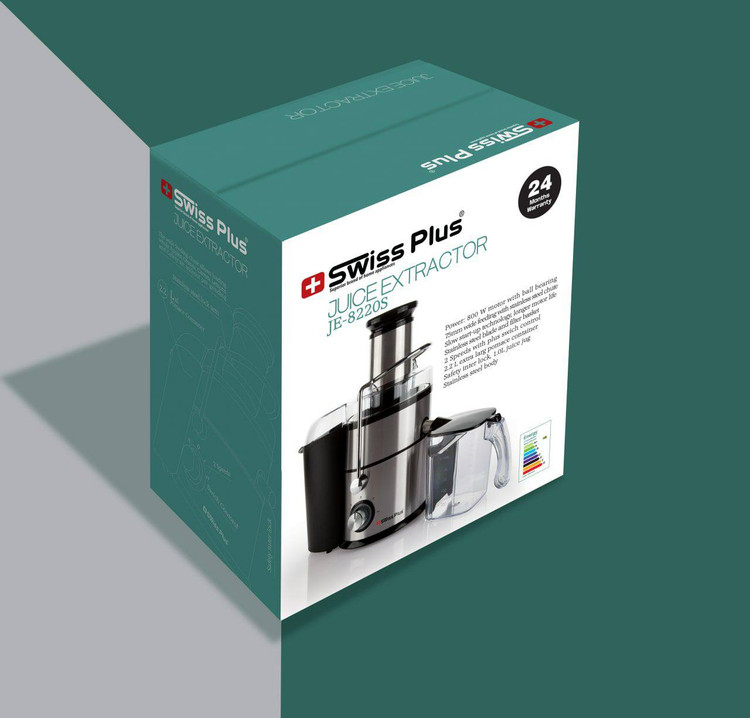 آبمیوه گیری سوییس پلاس مدل JE-8220S موتور قدرتمند: 800 وات با مصرف انرژی +A، جنس بدنه: استیل، دارای دو سرعت آب گیری و عملکرد سرعت لحظه ای، دارای سیستم محافظ حرارتی موتور و سوئیچ ایمنی ،دارای سیستم ضدچکه، با ظرفیت ۲.۲ لیتر برای نگه داری پالپ، مجهز به پایه ضدلغزش ،دارای قابلیت آب گیری میوه کامل، نظافت آسان متعلقات و بدنه ،دارای فیلتر استیل ضد زنگ با دهانه ای به قطر 7.5 سانتیمتر