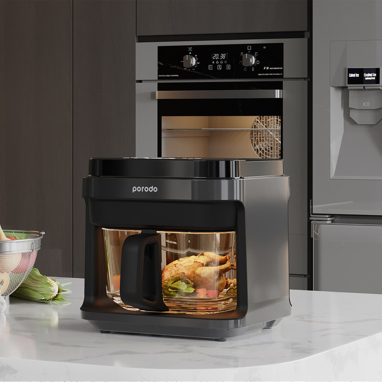 سرخ کن بدون روغن یا هواپز Porodo یک دستگاه قدرتمند و کارآمد است که می تواند به شما در تهیه غذاهای خوشمزه و سالم کمک کند. این سرخ کن بدون روغن از گردش هوای گرم برای پخت سریع با ظرفیت 5.5 لیتر از یک موتور 1200 وات تغذیه می کند و با فرکانس 220-240، 50/60 هرتز کار می کند و قدرت زیادی برای پخت انواع غذاها فراهم می کند و محدوده دمایی 40 تا 200 درجه سانتی گراد (100 تا 400 درجه فارنهایت) دارد که به شما امکان می دهد غذای خود را تا حد دلخواه خود بپزید. این دستگاه همچنین دارای یک تایمر است که می توان آن را تا 60 دقیقه تنظیم کرد تا بدون نگرانی از پخت بیش از حد غذا، غذای خود را به طور کامل بپزید. بنابراین، شما می توانید غذاهای مورد علاقه خود را تنها با لمس یک دکمه به صورت یکنواخت و سریع بدون نیاز به روغن بپزید. همچنین دارای یک پنل لمسی واکنش گرا نیز می باشد که استفاده و تمیز کردن آن را آسان می کند. دسته ضد حرارت یک ویژگی ایمنی است که برای هر سرخ کن بدون روغن ضروری است و این به شما امکان می دهد بدون نگرانی از سوختن و با خیال راحت استفاده کنید که این امر هنگام اضافه کردن یا خارج کردن مواد از سرخ کن هوا بسیار مهم است. سرخ کن بدون روغن پرودو همچنین دارای یک ویژگی خاموش شدن ایمنی است که در صورت گرم شدن بیش از حد دستگاه به طور خودکار خاموش می شود.