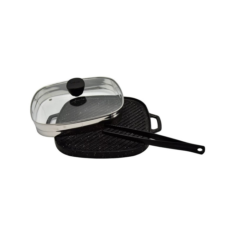 تابه گریل چدن گرد بزرگ یونیک از جنس چدن مرغوب تهیه شده است..از این تابه برای تهیه انواع غذاهای خوشمزه و سالم با حداقل میزان روغن مصرفی استفاده می شود. این تابه دارای دو عدد دسته از جنس چدن و درب دار می باشد.گریل کردن یکی از روش های پرطرفدار برای تهیه غذا ها است تابه های گریل با ایجاد خطوط روی غذا ها هم آن ها را زیبا تر و هم خوش مزه تر میکند.چدن به خوبی گرما را پخش میکند و باعث میشود همه جای غذا به طور یکنواخت پخته شود. علاوه بر این نقطه ذوب بالایی دارد و میتوانید از آن روی علاوه بر اجاق گاز روی اجاق های هیزمی و صحرایی با خیال راحت استفاده کنید. این تابه با روکشی نچسب پوشیده شده تا استفاده از آن راحت تر باشد. تابه گریل از محصولات زیبا و باکیفیت موجود در لوازم آشپزخانه چشمگیر می باشد.