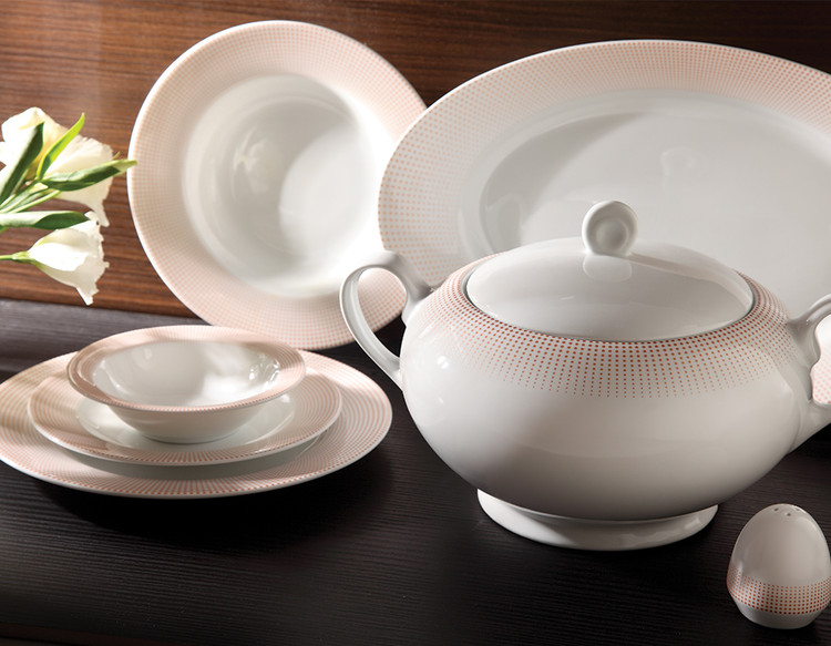 ظروف چینی ایتالیا اف با زیبایی کلاسیک و طراحی موزون خود، در اولین نگاه نظر هر بیننده ای را جلب می نماید. قطعات فوق العاده ظریف این پیکره به نحوی طراحی شده اند که از هر جهت پاسخگوی نیازهای مصرف کنندگان باشند. طرح نشات گرفته از خطوط منحنی ملایم در کنار کیفیت بسیار بالای بدنه چینی این ظروف، تکمیل کننده جذابیت ایتالیا اف می باشد.