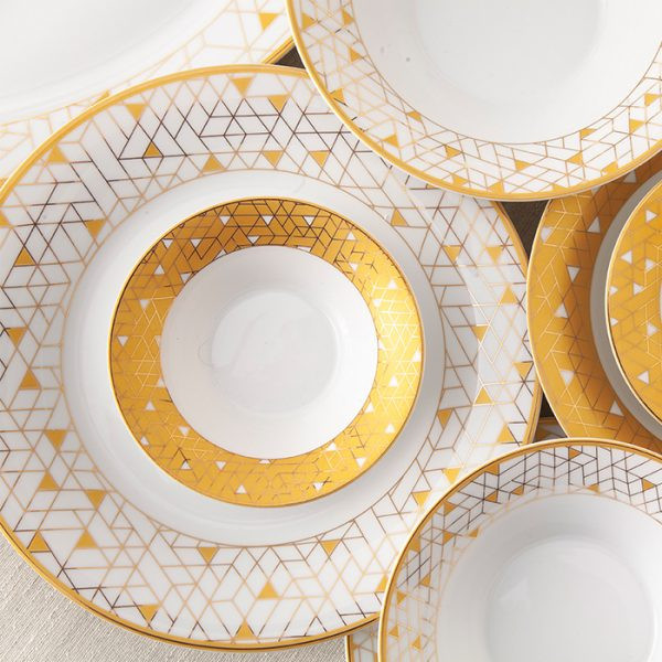 سرویس چینی 35 پارچه غذاخوری ژئومتریکال طلایی درجه عالی