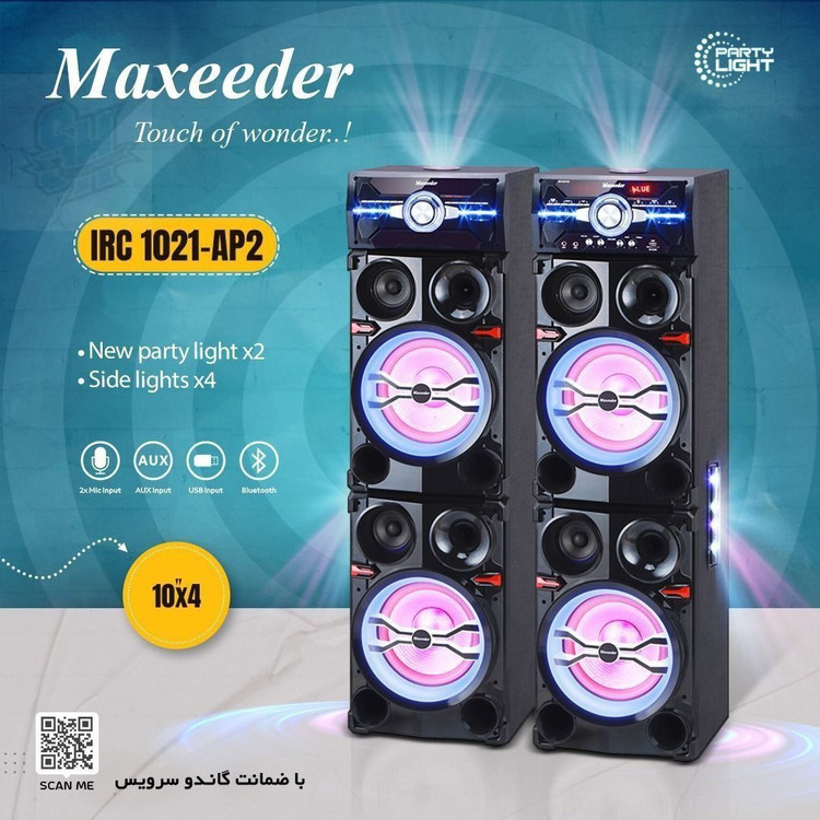 سری Party Light رقص نور سقفی و بغل (Disco Lights) تغییر حالتهای مختلف نورپردازی قابلیت اتصال به اپلیکیشن موبایل AB Link بدنه MDF هوشمند (تنظیم نور و صدا با اپ) ۲ ورودی میکروفون دارای اکولایزر دارای Echo و Volume میکروفون قابلیت تنظیم بیس و تریبل پخش فرمتهای mp۳ و wav و wma