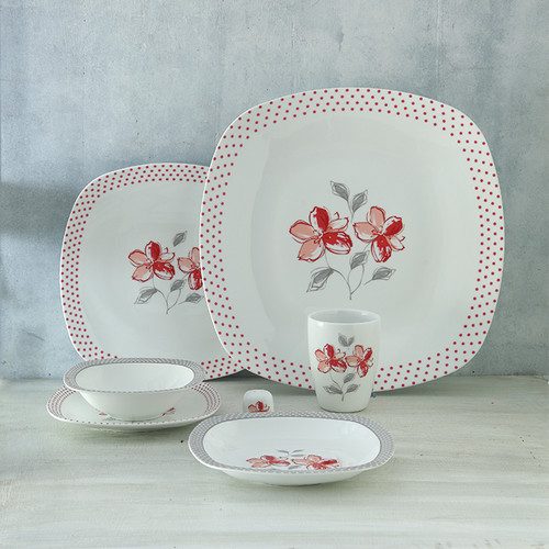 سرویس غذاخوری 27 پارچه چینی زرین ایران سری کواترو مدل والنسیا قرمز درجه عالیناموجود