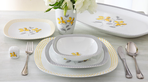 سرویس غذاخوری 27 پارچه چینی زرین ایران سری کواترو مدل والنسیا زرد درجه عالیتماس بگیرید