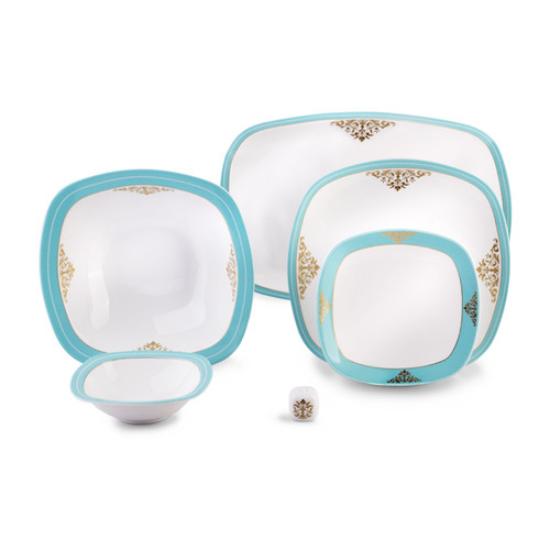 سرویس غذاخوری 27 پارچه چینی زرین ایران سری کواترو مدل حاشیه ارمیتاژ فیروزه ای درجه عالیناموجود